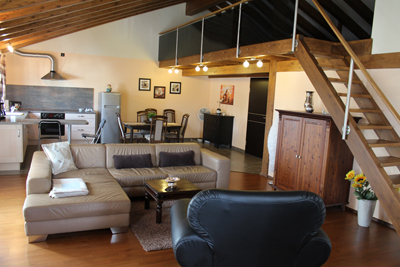 ...die noch weitere Schlafmöglichkeiten bietet, die über eine Holztreppe nach oben führt.